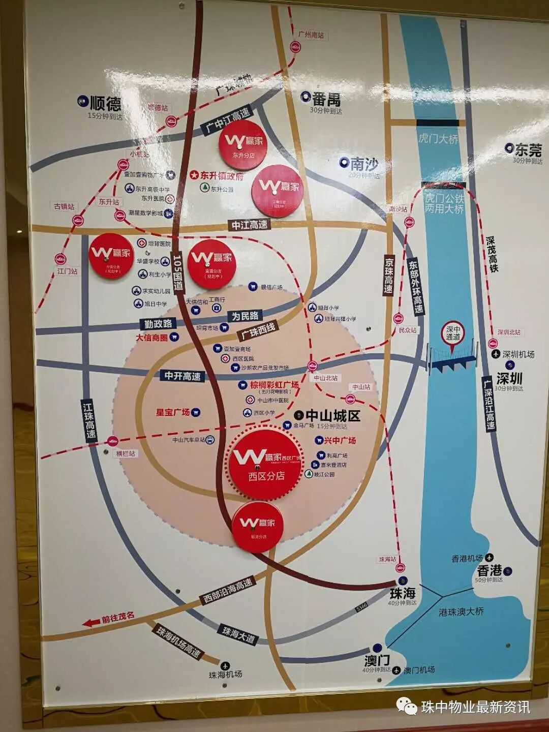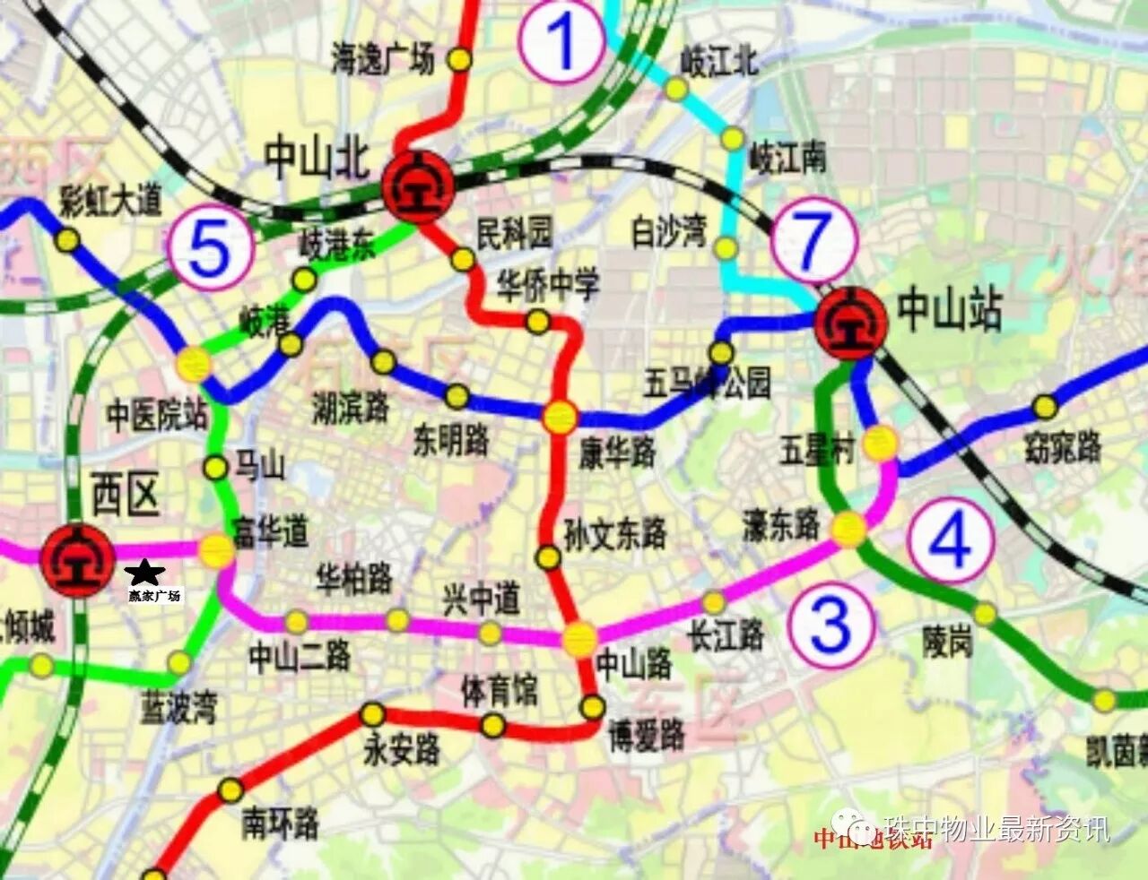 中山汽车客运总站、西区地铁站(规划中)、深茂高铁中山北站、香港专线富华車站