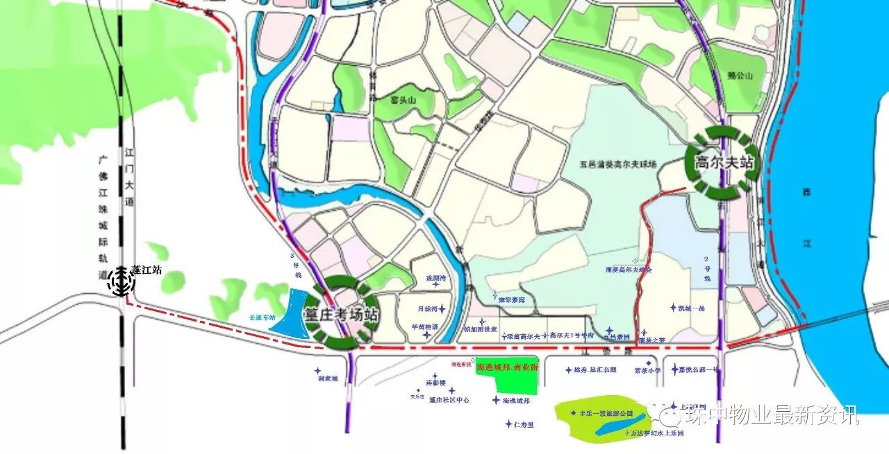 交通配套:滨江新区地铁篁庄考场站、高尔夫站,江门长途汽车客运站、广佛江珠轻轨蓬江站